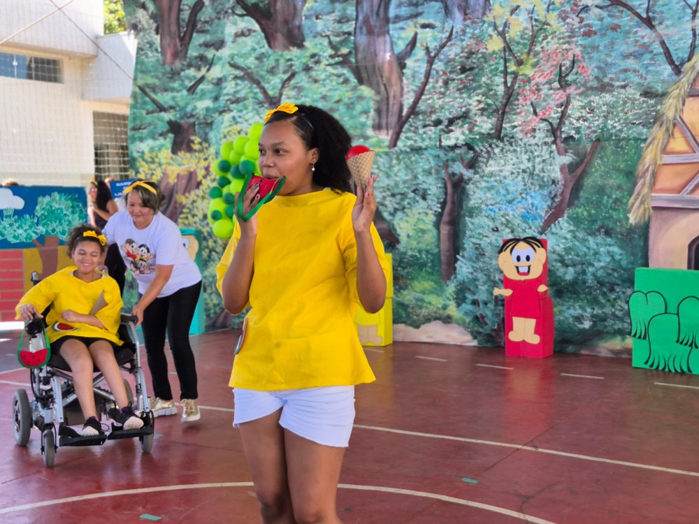A quadra da APAE tornou-se palco para três apresentações teatrais inspiradas no Pequeno Príncipe, na Turma da Mônica e nas riquezas culturais do Brasil. O roteiro foi construído ao longo de meses, com dedicação que envolveu cada aluno em todas as etapas: figurinos, ensaios, cenários e coreografias.
