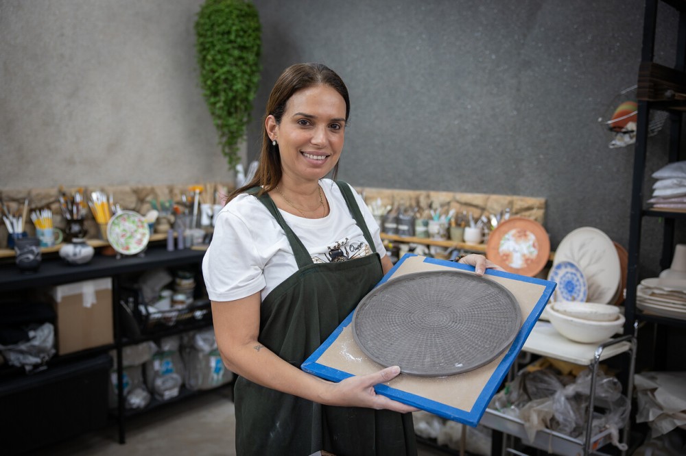 “Aqui aprendi a fazer todo o processo. É um momento de calma, tranquilidade, uma verdadeira terapia”, afirma a empreendedora e artista Renata Arruda Miranda, de 51 anos.
