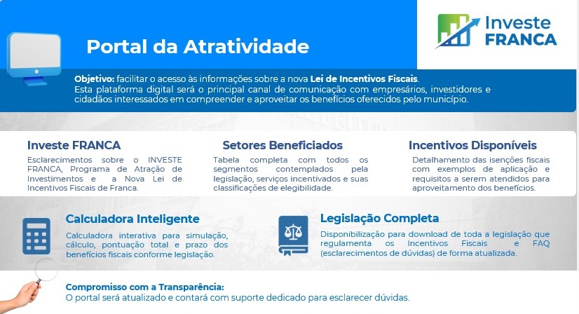 Ao apresentar os detalhes da iniciativa, o prefeito destacou que a proposta busca tornar Franca mais atrativa para novos negócios, além de ampliar a competitividade das empresas locais.